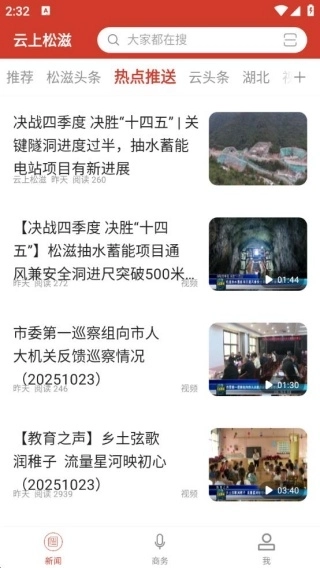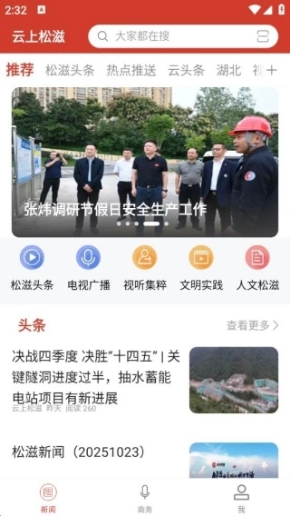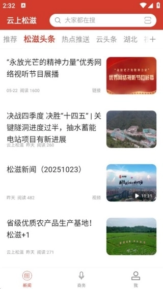 2、点击“松滋头条”,即可阅读松滋当地的最新新闻动态。