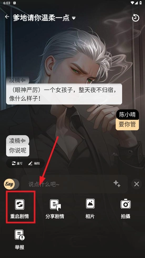 选择重启剧情,重启后当前的剧情进度将不会保存。