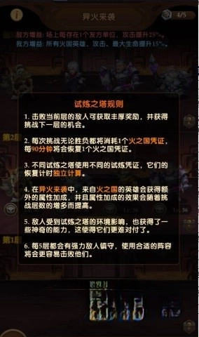 挑战宝塔时,英雄所属国家的特性会提升你的能力,建议优先安排对应国家的英雄出战。