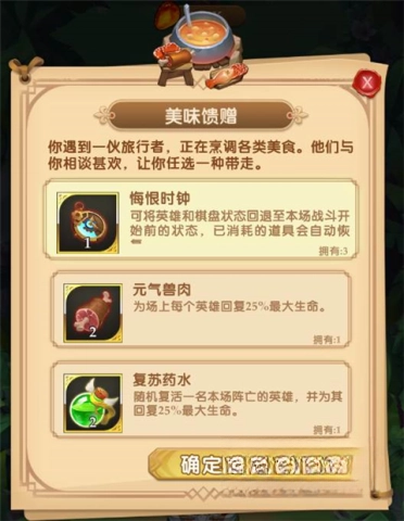 美味反馈: 选择道具提升战斗力,更加轻松。
