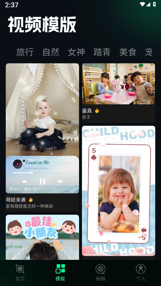 1、拥有多样的模板可供挑选,你可以从中选择心仪的模板来制作专属视频;