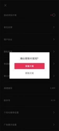 4、关闭自动添加片尾功能后,点击“×”退出设置。
