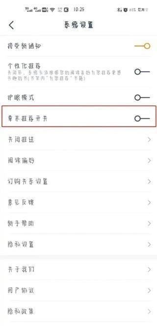 第三步:点击页面上的【章末推荐开关】选项,即可开启章末推荐功能。