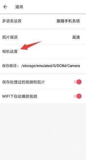 在通用设置中选择相机设置