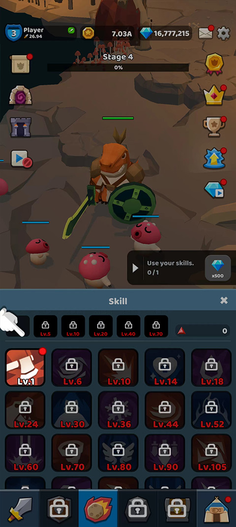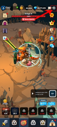 3、当我们到达一定等级之后,在点击下方的火球图标,然后学习我们的第一个技能,学习之后,我们就可以释放技能来打击怪物,效率会更高;