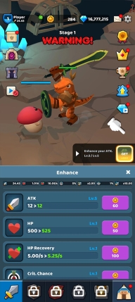 4、每通过一个关卡,都会加满我们的血量,还会获得相应的金币奖励,可以使用金币奖励来提升我们的战斗力;