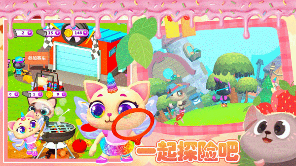 1、萌系画风:游戏采用了清新可爱的萌系画风,宠物们的造型设计细腻且富有童趣,无论是它们的动作还是表情,都栩栩如生,让人忍不住心生喜爱。这种独特的画风,使得游戏在视觉上给玩家带来了极为舒适的体验,尤其吸引喜欢可爱风格的玩家群体。