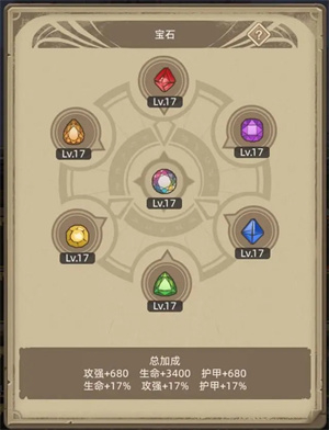 盾牌格挡专精解锁之后,全部资源集中到提升宝石上面,宝石提升的战力并不是全角色共享,不用平均分配,卡关开的其他角色,宝石全部零等级,前期只将这些角色作为刷金币和地下城挑战券的工具。