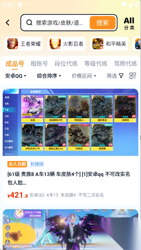 2、首页页面推荐了很多的游戏账号。
