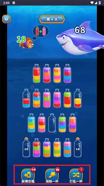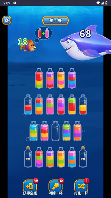 策略性道具运用:玩家能够依据关卡的难易程度以及瓶子的布局状况,巧妙且灵活地运用道具,以此突破困境,进而增强游戏的策略性。