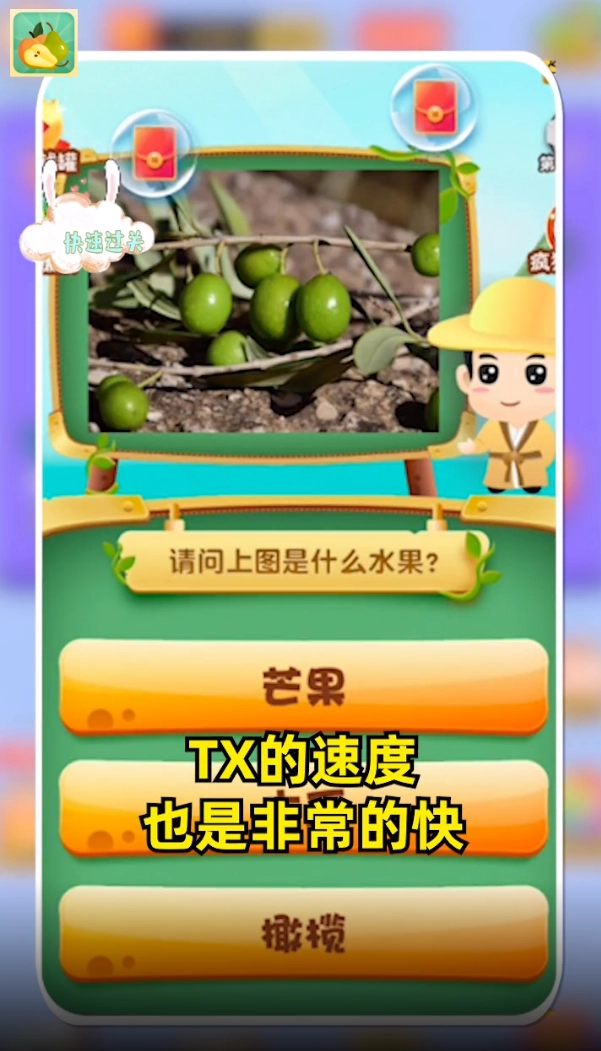 3、查看图中水果蔬菜的图片,挑选正确的名称,完成测试就能得到对应的红包奖励。
