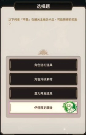 1、在通关主线关卡后,以下哪一项不属于可能获得的奖励?