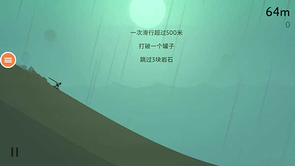 5、当面对大坡时,长时间按住屏幕右侧,就能完成帅气的后空翻动作。这不但可以提高分数,还会让你的冒险过程更加酷炫。但要留意落地的姿势,防止头先着地而导致游戏失败。