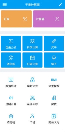 千维计算器,一款专注多维度计算的专业手机转换软件。它的出现,彻底告别了用户上网查询的繁琐。只需轻松打开软件,汇率查询、科学计算、单位换算等功能一应俱全,功能丰富多样。 从此,用户无需再费力背诵那些繁杂枯燥的公式。无论是商务办公、出境旅游,还是学习、教育科研,千维计算器都是广大社会人士的明智之选。在这里,不仅能实现汇率查询转换,还拥有手机屏幕标尺、房贷计算器、税费计算器等诸多实用功能。它就像口袋里的功能换算器,更是个性化的记忆计算器,全方位满足你的需求。不仅支持主流的三角函数、幂函数、开方函数等同时计算,而且计算模式兼具四则运算与分步计算两种,在界面上可直接切换,实时显示计算结果。