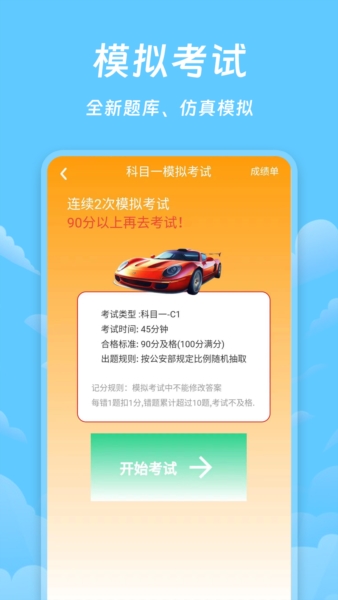 1、模拟考试:真实模拟驾考科目一的考试环境,有效提升考生自信心。