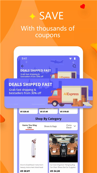 aliexpress 手机客户端是一款移动购物软件,是面向国际市场的在线交易平台,帮助中小企业接触海外市场。软件可以缩短优化外贸产业的供应链,帮助中国商家去获得更高的利润,覆盖3C、服装、家居、饰品等等多个一级行业类目,在这里买到超多的优质低价商品,足不出户即可海淘挑选心仪的海外商品。