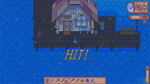2、在等待期间,当听到提示音,同时看到头顶出现“!”的时候,水面会浮现hit标记,这时点击收杆,即可进入钓鱼小游戏。