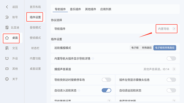 2. 进入之后,按顺序点击桌面 - 插件设置 - 导航插件功能