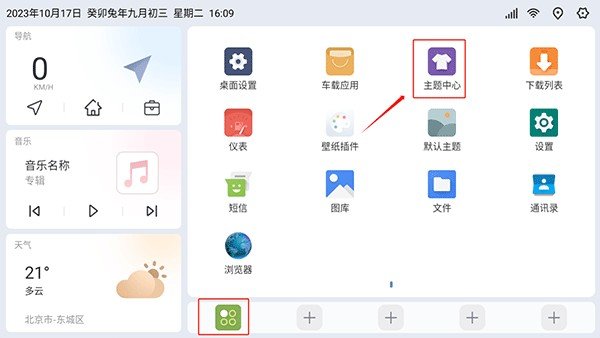 1、首先在首页点击下方的应用图标,接着点击主题中心。