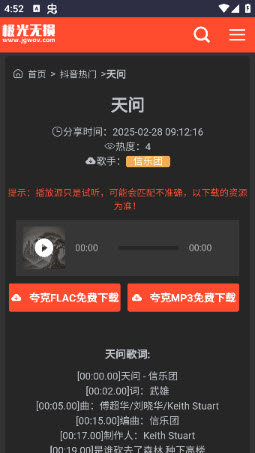 在线播放:虽然网站主要提供服务,但用户在前可以在线试听音乐片段。