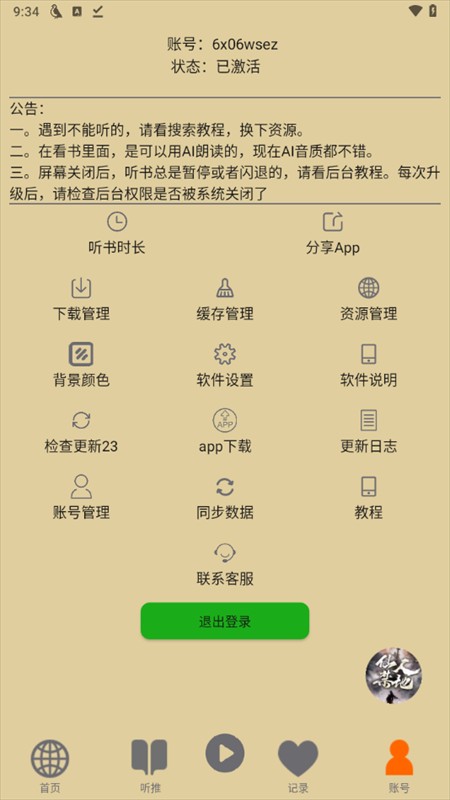 5、在账号界面中,能够执行管理操作,还包括缓存管理、资源管理以及背景颜色修改等一系列相关操作。