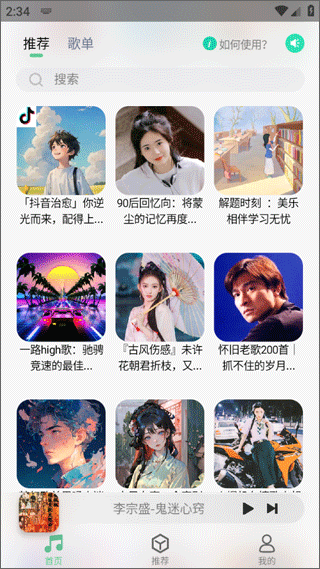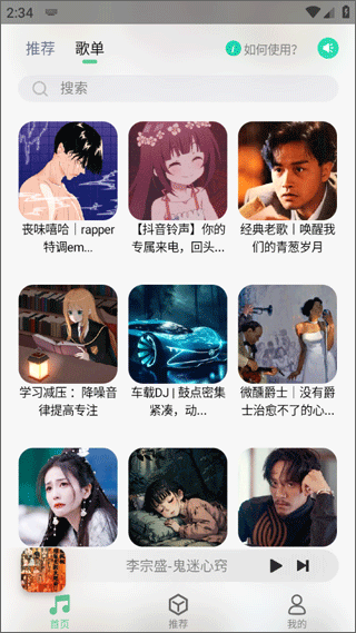 2、在左上角,能够在推荐页与歌单页之间切换到所需页面。