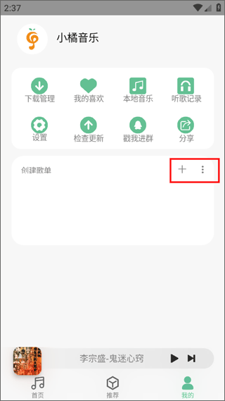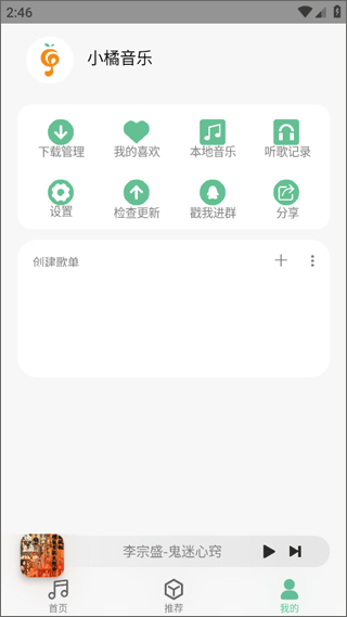 1、进入小橘音乐2024最新版本后,功能分区清晰明了。
