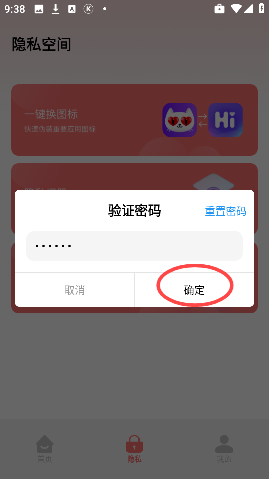 5、这时候再次进入隐私相册的时候,就需要输入验证密码了,如图所示。