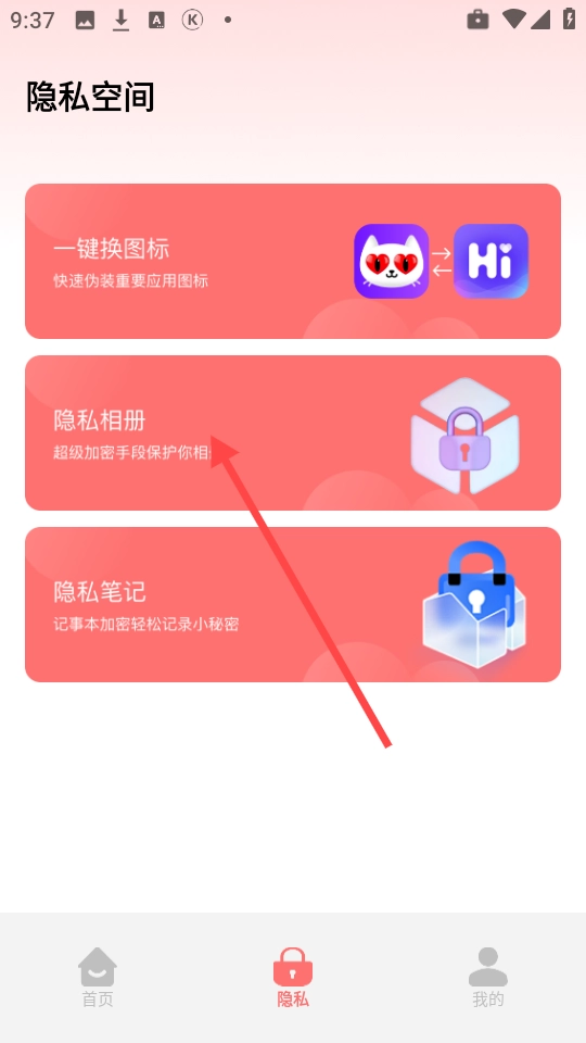 搭载了计时器,锁屏保护,隐私相册,隐私笔记,一键换图标。