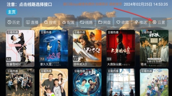 1、第一步,打开软件。若为首次使用,需选择线路,之后点击此处的设置。
