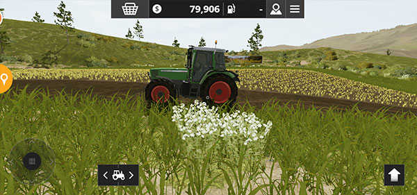 3、此为游戏初期您所拥有的田地之一,田中的小麦已然成熟,此刻正是收割之时,借助联合收割机就能收割田里的作物。右侧的滑动条是油门,用于控制前进与后退;左侧的方向盘则用来控制左右转弯。