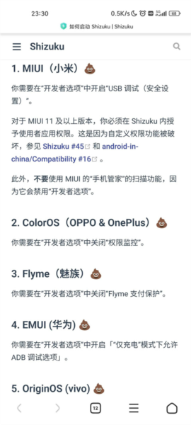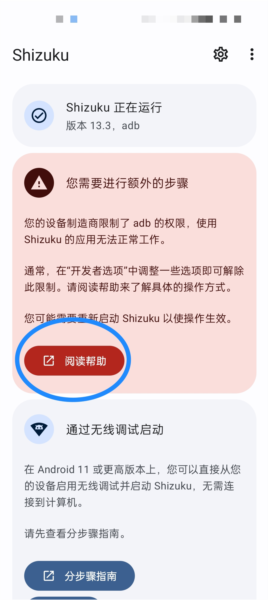 在安卓11及更高版本的系统中,仅需依照步骤指南,借助无线调试来开启Shizuku。而且该步骤指南里,针对常见厂商的机型,还提供了可能碰到问题的解决办法。