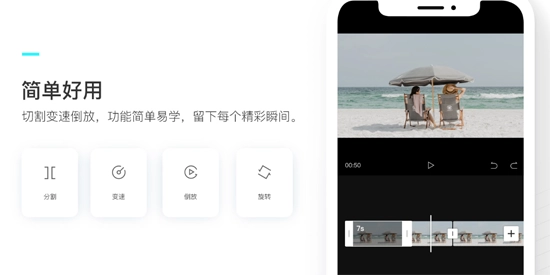 基础剪辑涵盖视频裁剪、分割、合并、倒放以及变速(含曲线变速)等基础操作,可满足日常剪辑所需。
