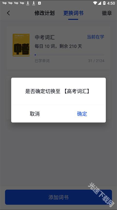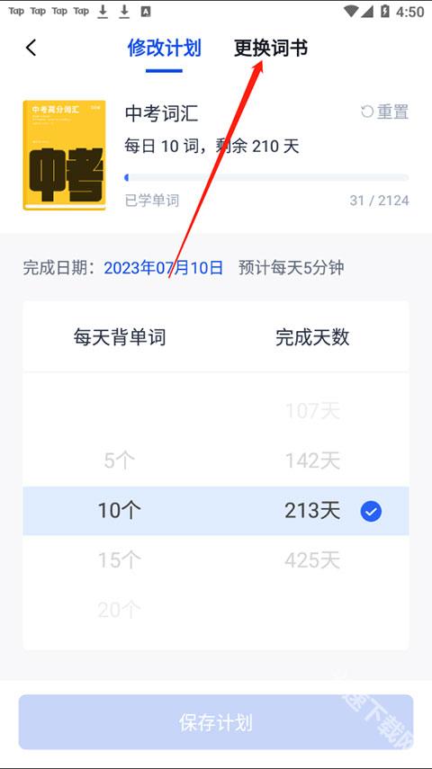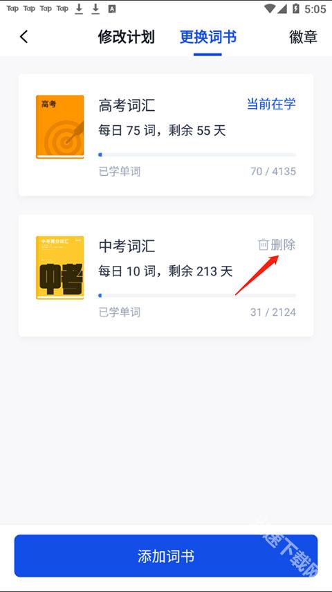 当前正在学习的词书无法直接删除,只能进行重置操作。若您需要删除该词书,可先切换至其他学习计划,之后再按之前的步骤操作即可完成删除。