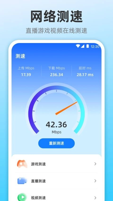 支持用户随时对所需网络进行测速,以便更好地了解网络状况。