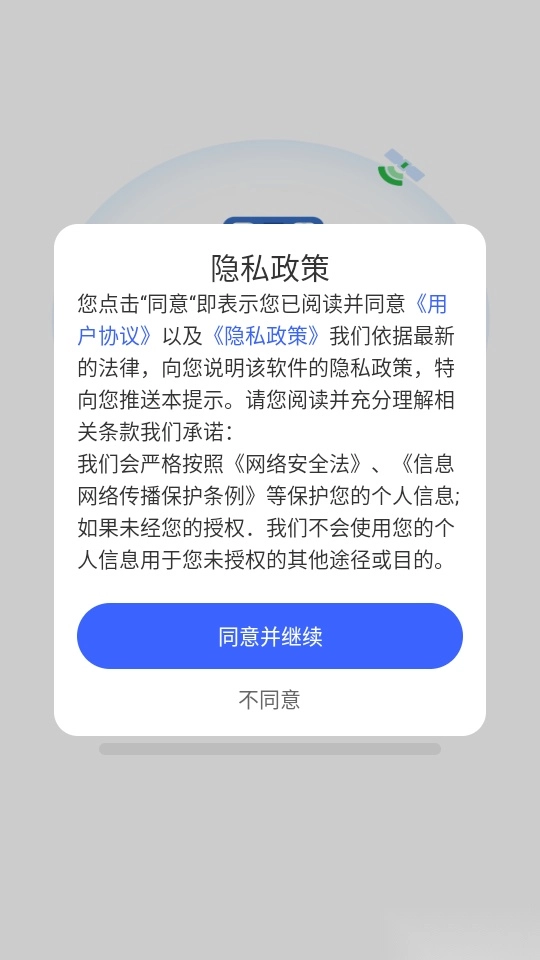 首先打开应用点击“同意并继续”按钮来进入中。