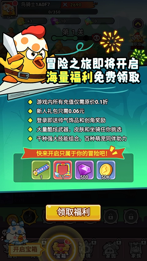 这是一款特别适合闲暇时光体验的游戏,操作方面没什么门槛,开局就能获得一只鸡,想要提升战力就得靠不断刷怪。随着玩家等级的提升,游戏里的转职系统会解锁,玩家操控的角色能从一只鸡转变为职业英雄,而且有多种发展路线可供挑选。此外,还能得到众多强力伙伴帮忙战斗,更有华丽又炫酷的技能可以学习,玩家可以一步步变强,最终击败所有怪物。