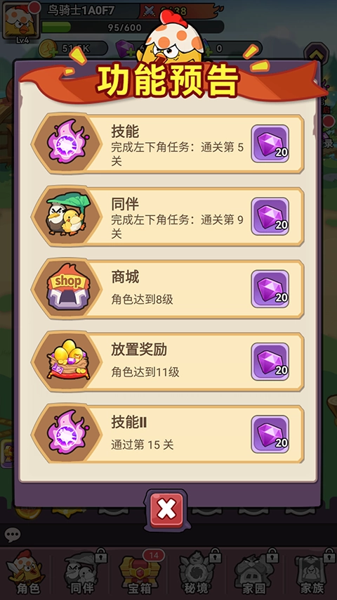 逆焰是一款休闲放置闯关游戏,提供多种英雄供玩家收集。游戏里,玩家将化身一只小鸡开启冒险,起初只有孤零零的自己,没有任何伙伴。随着击败怪物数量增加,积累了足够战斗经验并完成升级后,就能解锁更多宠物伙伴,还能从鸡进化为英雄,进而选择转职方向。