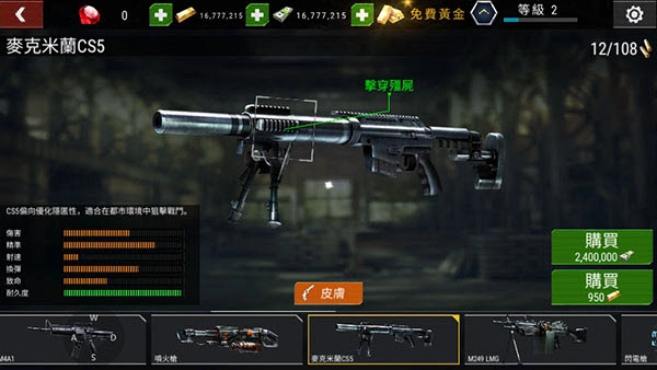同时也可以对枪械进行升级。