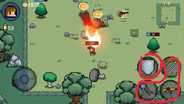 武器的机制是按住就能持续攻击,不用你一下下点击;所以前期要是觉得攻速慢,大可以一直按住两个武器让它们同时攻击。
