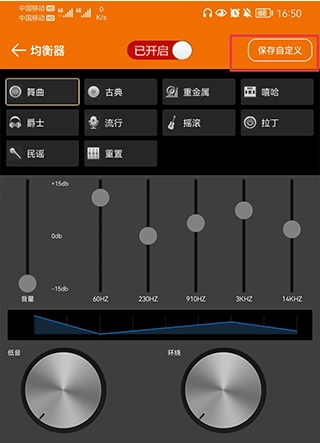 进入均衡器界面后,可依据个人喜好自行调节各项参数。