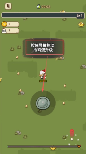 升级角色:按住屏幕移动角色,捡起鸡蛋进行升级。