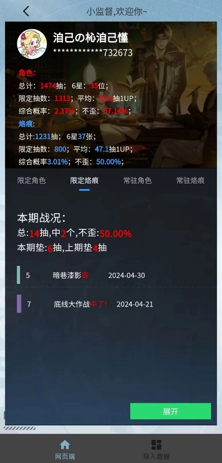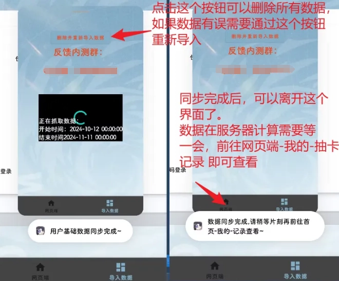 登录操作完成后,小助手会自动进行数据抓取,你只需等待进度条走完,就能到网页端查看抽卡记录啦。要是发现抽卡记录有错误,你可以点击导入数据页面顶部的删除数据按钮,确认删除后重启小助手,再重新导入一次就可以了。