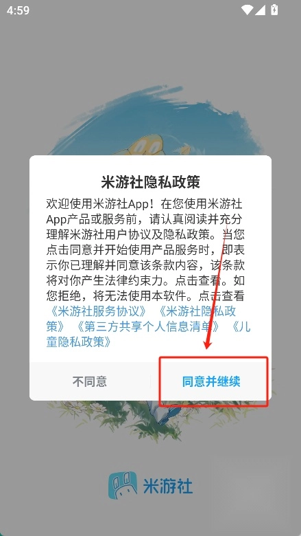 首先前往魔趣网下载并安装米游社最新版本。打开应用后,点击“同意并继续”按钮即可进入首页。