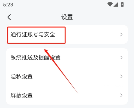 选择“通行证账号与安全”并点击