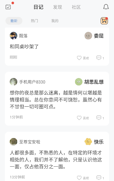 在动态界面里,用户能随时发布句子,还能和同样喜欢分享句子的朋友互动交流。