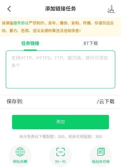 你也可以点击“文件”选项,把任务链接或者BT链接复制粘贴到输入框里,之后点击“添加”按钮就可以了。