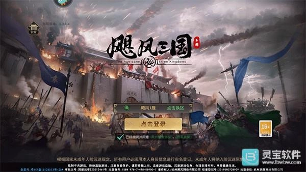1、在本站飓风三国,进入游戏后选择区服点击登录;