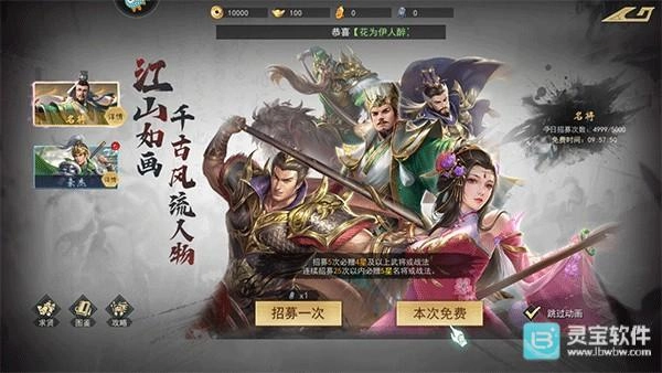 5、完成后点击右下角招募,新手首次登录免费招募五次;