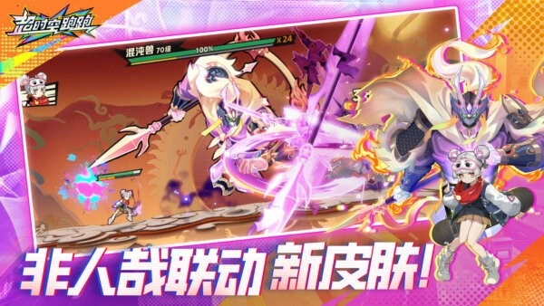 超时空跑跑融合了横版动作的扎实手感、射击的精准反馈与跑酷的流畅移动,营造出节奏明快的操作体验。玩家仅需单指滑动屏幕,即可操控风格各异的英雄快速穿梭,在枪林弹雨中灵活躲避,同时释放华丽炫酷的全屏技能,瞬间清理密集的怪物群。轻度Rogue机制让每次冒险都充满未知惊喜,随机词条与装备养成搭配出无限可能。关卡设计简洁精炼,能充分利用碎片时间,近期推出的国漫联动主题还带来了限定皮肤与专属玩法,视觉效果与游戏玩法都得到了升级。